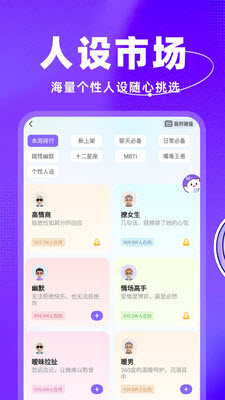 2.多种人设性格的聊天自由挑选,高冷、文艺、幽默等等,丰富多样。