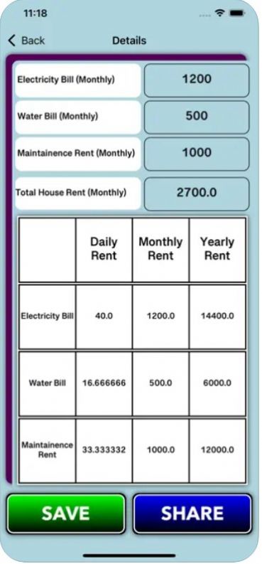 1、简单易用,具有简单明了的使用界面,用户可以迅速完成租金计算并查看到结果,无需长时间等待或研究使用方法。