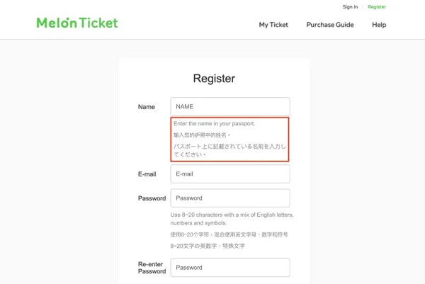 因为现场取票一定会核对身分,基本上都是核对护照上姓名,所以注册时请直接填写护照上完整姓名,不要写昵称!不要打错字!不要只写名不写姓!