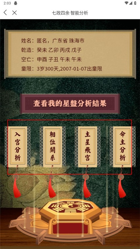 3、接下来用户就可以查看自己的命盘分析结果啦。