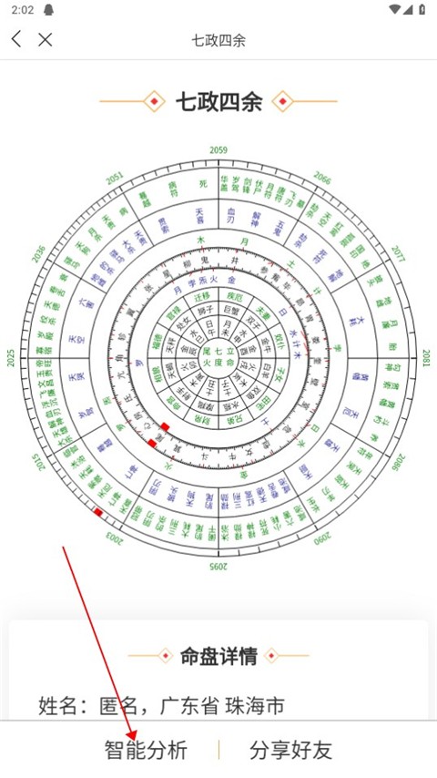 2、接下来用户就可以看到自己的命盘详情了,点击智能分析还可以看到详细的分析。