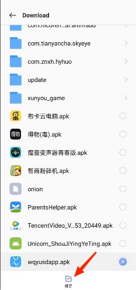 4、选择唯趣应用商店apk确定,一般都是在download文件夹中。