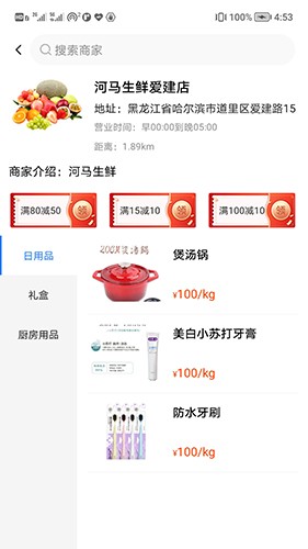 2、商家分类包括生鲜,五金,鲜花,蛋糕,化妆品,电器,百货等等。