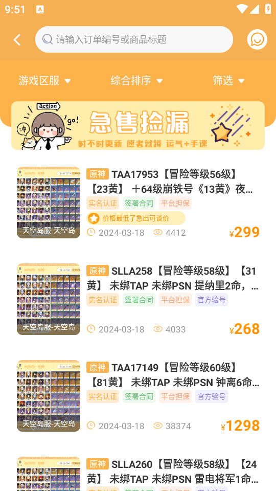 3. 实时更新账号库存,确保用户获取最新最全的游戏账号售卖信息。