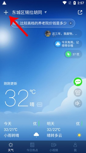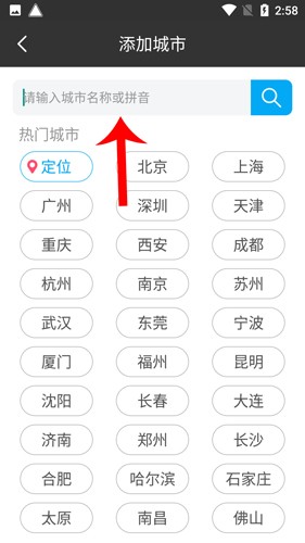 2、要是去了其他城市或者想要了解其他城市的天气可以选择直接添加。