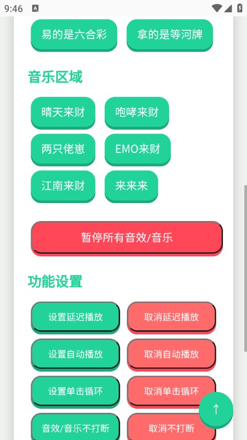 点击“暂停所有音效/音乐”按钮,可以暂停当前正在播放的音频。