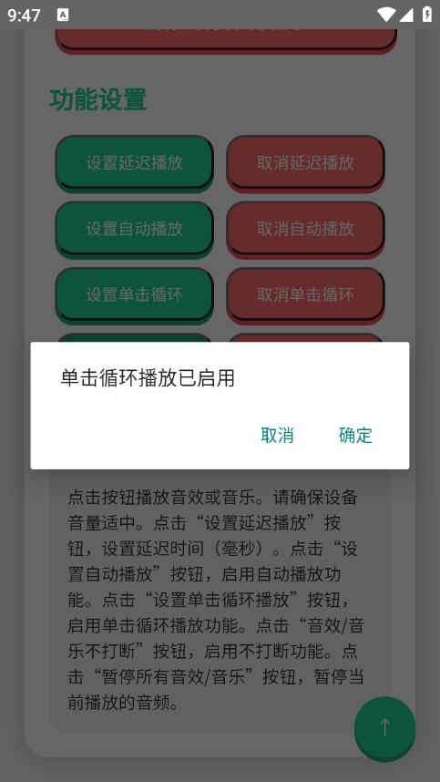 点击“音效/音乐不打断”按钮,将启用音效或音乐连续播放不被打断的功能。