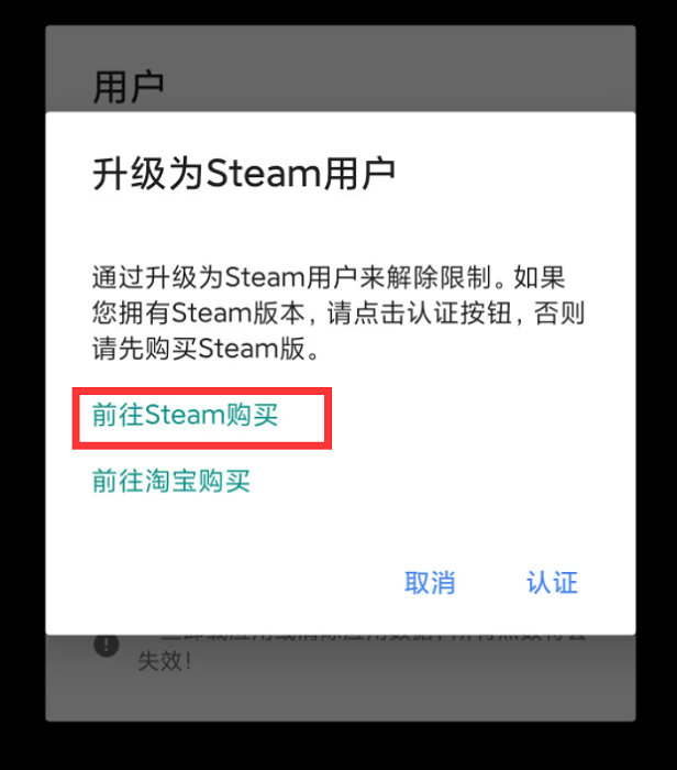3、升级为steam用户需要前往steam购买,认证