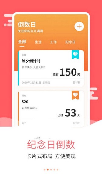 1. 支持创建多个不同类型的纪念日或倒计时事件,涵盖生活工作各领域。