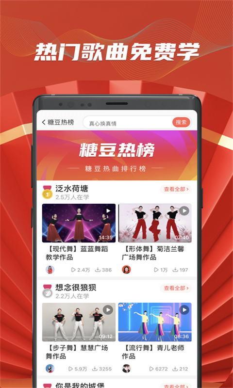 糖豆广场舞是一款专为广场舞爱好者设计的手机软件app,它集合了丰富的广场舞视频教程、音乐资源以及社区交流功能,旨在为广场舞爱好者提供一个全面的学习和交流平台。通过糖豆广场舞,用户可以随时随地学习最新的广场舞步,欣赏精彩的广场舞表演,同时还能与其他舞友分享自己的舞蹈视频,交流舞蹈心得。