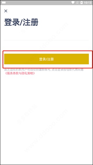 3、这时就会到“登录/注册”界面,输入你的账号密码即可进行登录,同时就算你是首次登陆的新用户也会自动根据你输入的创建新账号。