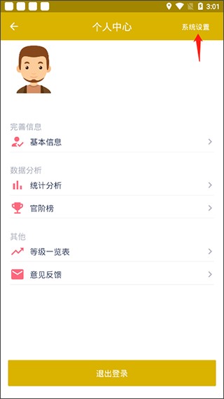 1、点击右上角的按钮到“个人中心”可先设置自己的基本信息,从而即可更好的帮助你进行统计。
