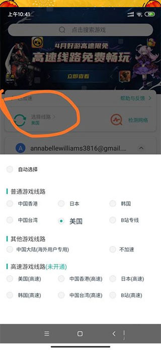 3、之后选择一个线路加速,也可以自动选择线路;