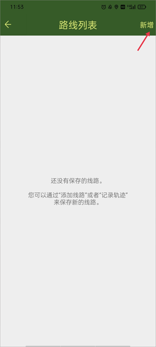 2、这里会显示你添加的路线列表,点击上方红色箭头指向的“新增”按钮。