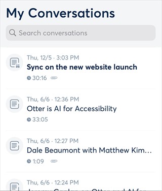 轻点“我的对话”以查看你自己的录音列表,点击标题以显示详细信息屏幕,你可以在其中查看文本或再次收听录音。