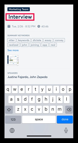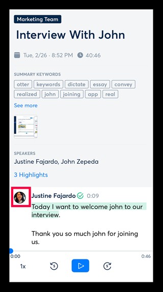 你可以更改扬声器的名称,点击人员图标以更改姓名,对于 Otter 用户,也可以链接用户。