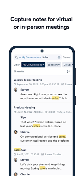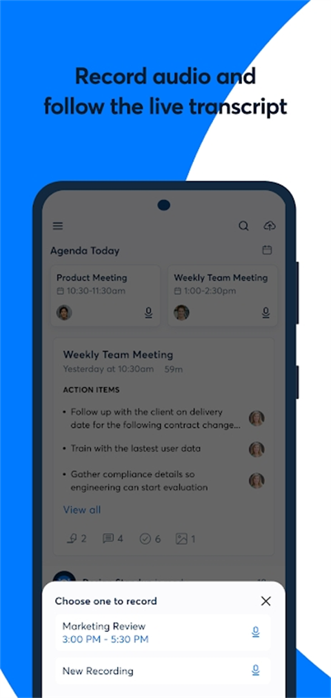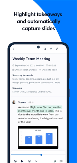 1、自动记录会议并与队友分享,确保大家始终保持同步。