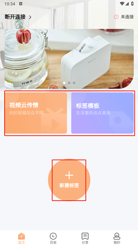 1、打开海鸟贴纸打印机app后点击右上角的未连接