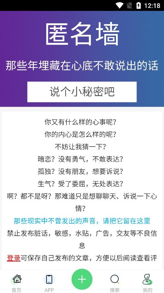 3、匿名墙app是一款可以将自己心理的不快表达出来的app。