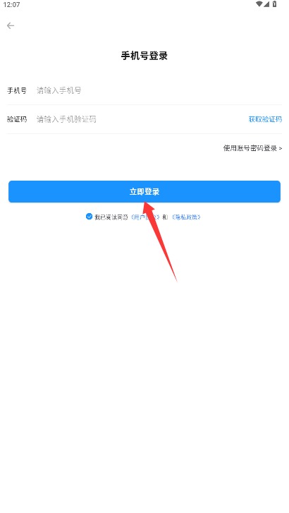 2、在登录界面输入个人手机号码并获取短信验证码,填写后点击立即登录完成验证。