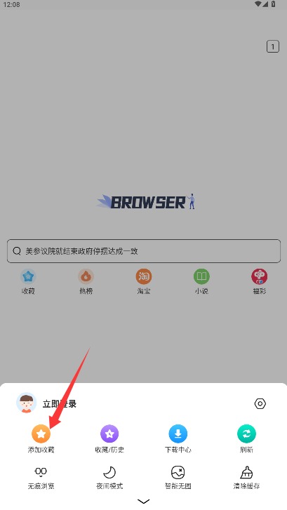 4、点击右下角菜单功能选择添加收藏选项,可将当前网页保存至个人收藏夹。