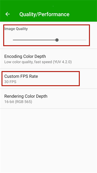 5、点击quality/performance可以修改画质和性能,用户可以根据设备状况切换帧数,软件提供30、60FPS。
