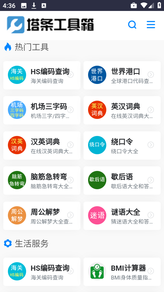 塔条工具箱app是一款涵盖了各种日常生活工具的软件,用户可以使用自己所需的各个工具来解决自己的问题,涵盖了英汉词典、绕口令、歇后语、脑筋急转弯等等,满足不同用户的不同使用需求,而且适用范围很广,适用于不停环境下的场景,有需要的用户可以随时下载使用。