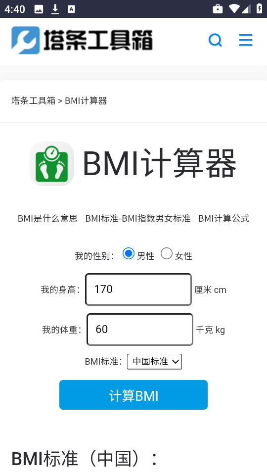 塔条工具箱appBMI怎么计算