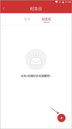 2、在纪念日页面,点击右下角的“+”按钮添加新纪念日。
