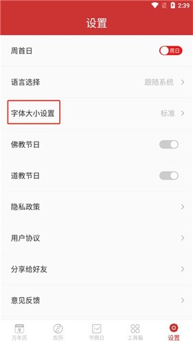 桔子万年历app怎么修改字体大小