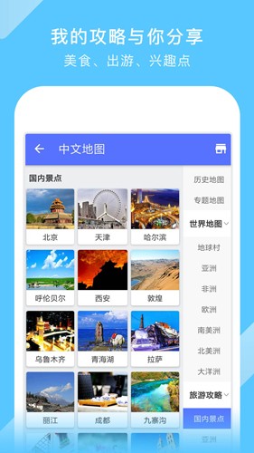 轻松查看我国的国界和行政区划,不同的城市、国土和山脉都有进行标注,带给你最为专业和权威的地理信息。