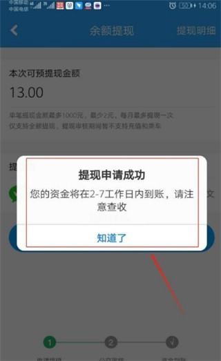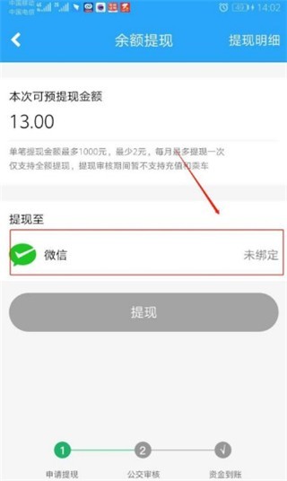 ps:提现是需要审核,在提现期间不能充值和乘车。
