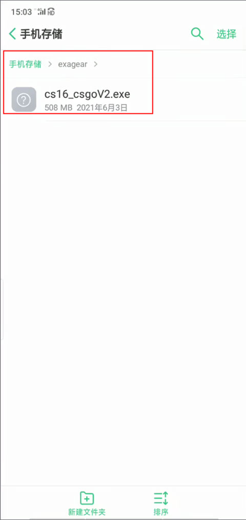 1、在自己手机文件管理器中新建一个名称为exagear的文件夹。