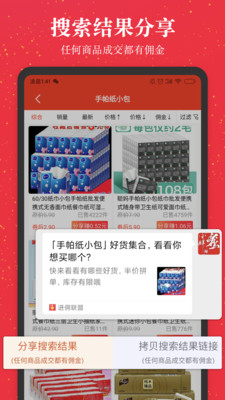 v5.1.21.新增图片素材分享2.新增搜索结果集合分享(极大提高佣金)3.新增无来源链接分享和文本分享4.优化部分UI5.增加分类页面,修正全新分类