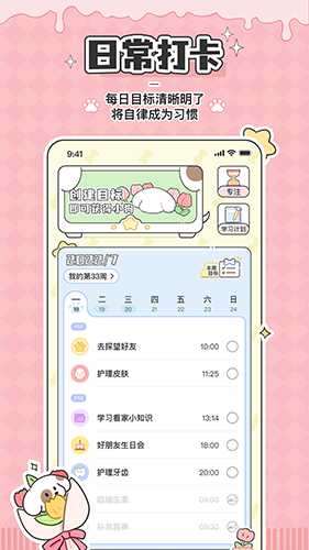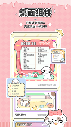 目标追踪功能让用户能够设定明确的目标,并实时查看进度。日程管理功能则方便用户记录和安排日常任务,确保每一天都井井有条。此外,软件还加入了云养宠的趣味玩法,用户只需登录并创建计划,就能领取狗粮,成为小狗的饲养员。通过完成任务,你可以为小狗装扮狗窝,让自律的过程变得更有趣。