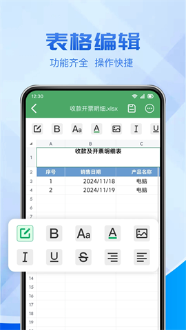 手机制作excel表格是一款非常不错的手机端表格制作工具,为用户提供方便快捷的表格文档整理制作服务,通过在其中进行数据的安排以及设置来满足日常生活办公的使用,还有更多专业功能辅助你的设置以及使用,让办公更加轻松,符合不同场景的使用要求,在线就能轻松的编辑表格,哪怕是你电脑上传到手机上的表格,也可以导入软件来快速编辑,在外面也能完成突发的工作,感兴趣的快来下载试试吧。