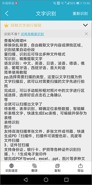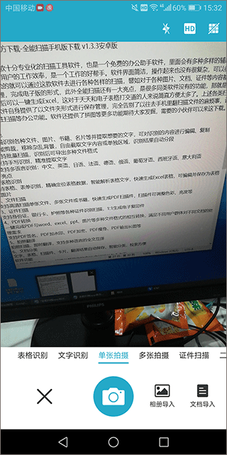 1、扫描能力非常的强,精准识别各种文件,图片,即使在复杂的环境下也能保持较高的识别率。