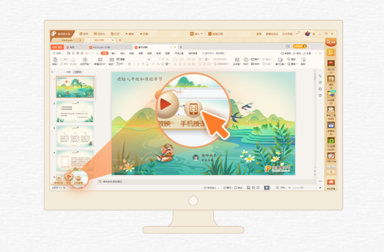 若已打开课件,可直接点击左下角的“手机授课”。