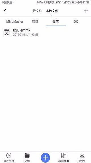 3、别人发给我的微信、QQ、钉钉接收完思维导图的源文件后,可直接打开MindMaster APP,在“本地文件”里面进行查看、保存、编辑。