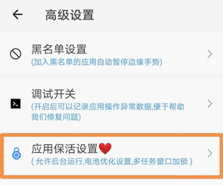 1、在手机上打开该软件的“高级设置”找到“应用保活设置”。