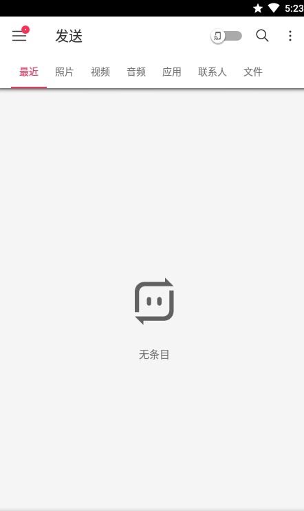 在顶部的状态栏里也能看到详细的分类,分别是最近、照片、视频、音频、应用、联系人和文件。