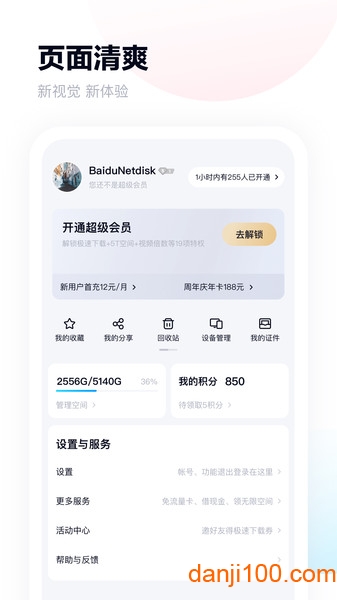 百度网盘极简版带给广大用户们,这个版本的特点就是安装包非常小,只有三十几兆,完全不占用手机过多的内存,不过我们平时用也是足够了,只需要上传文件、下载分享就行了。