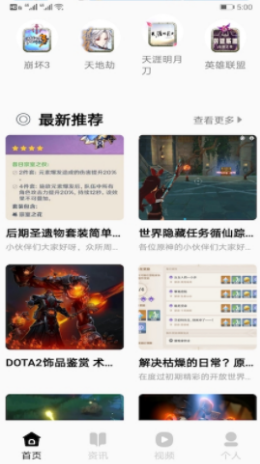 3.软件主要的游戏模块分为四种,包括崩坏3、天涯明月刀还有天地就以及英雄联盟,各种火爆的游戏内容每天都会更新优质资讯内容,让用户可以尽情的使用和查看,没有任何门槛。