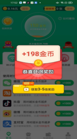 3.软件中的所有金币都可以可以在软件中的快速提现模式汇总兑换各种不同类型的红包,通过加速提现来进行红包的领取,不仅可以使用WiFi连接还可以赚取红包。