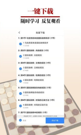 ·轻松使用,自由学习,用户可以非常简单的来使用软件进行国际跳棋的学习,没有任何操作的困难,简单方便的就可以打开课程进行学习和提高。