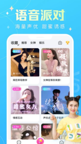 ·语音派对,丰富玩法,用户可以看到软件中所有的语音派对玩法,让用户自己来和其他用户进行更好的享受声优的甜美声线,感受更独特的玩法。