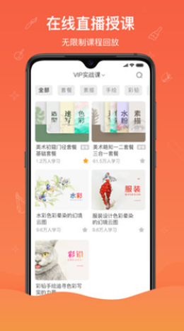 ·丰富课程,自由选择,软件上拥有超级全面的课程内容,用户可以自由设计和选择,阿伯阔手绘彩铅、水粉颜料以及国画还有动漫等等,内容丰富。
