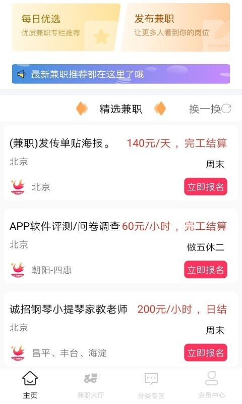 3、支持在平台上寻找长期或者短期的兼职,适合多种没有太长时间的人群,在校大学生们,还有上班族们都可以在这里寻找到适合自己的兼职;