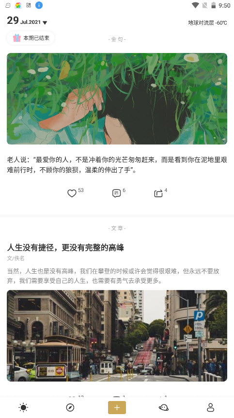软件的使用步骤是非常简单的,里面是能够让用户复制的,而且平台还有专门的分类,爱情、友情、心灵鸡汤以及人生哲言等类型句子,在摘录发表朋友圈或者是写文章的时候均能够使用的,在里面编辑出你喜欢的文案,在交友的时候,更是能够展现自己的个性以及人生态度,用户在里面是能够发布自己所感兴趣的句子。