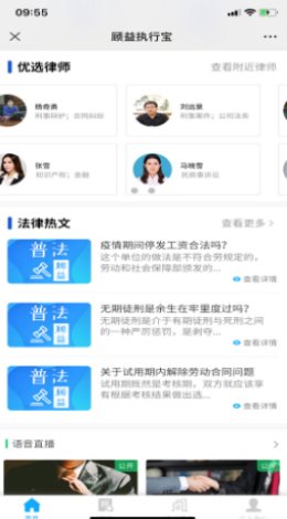 3.软件上还有非常独特的各种功能,包括专业的法律知识热文以及对应的法律语音直播模式,通过观看直播来吸收更多专业的知识点,提高自己的法律意识。